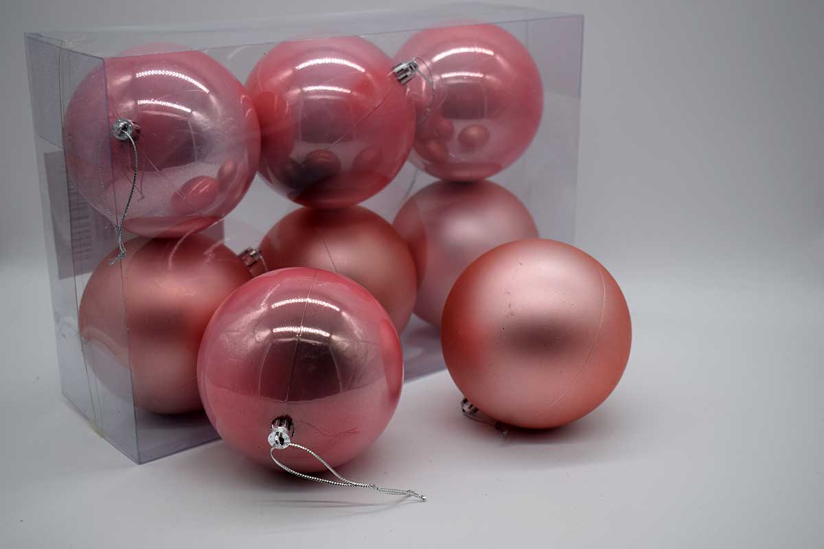 10cm πακετο s/6 χρ.μπαλες αθραυστες matt/pearly blush pink
