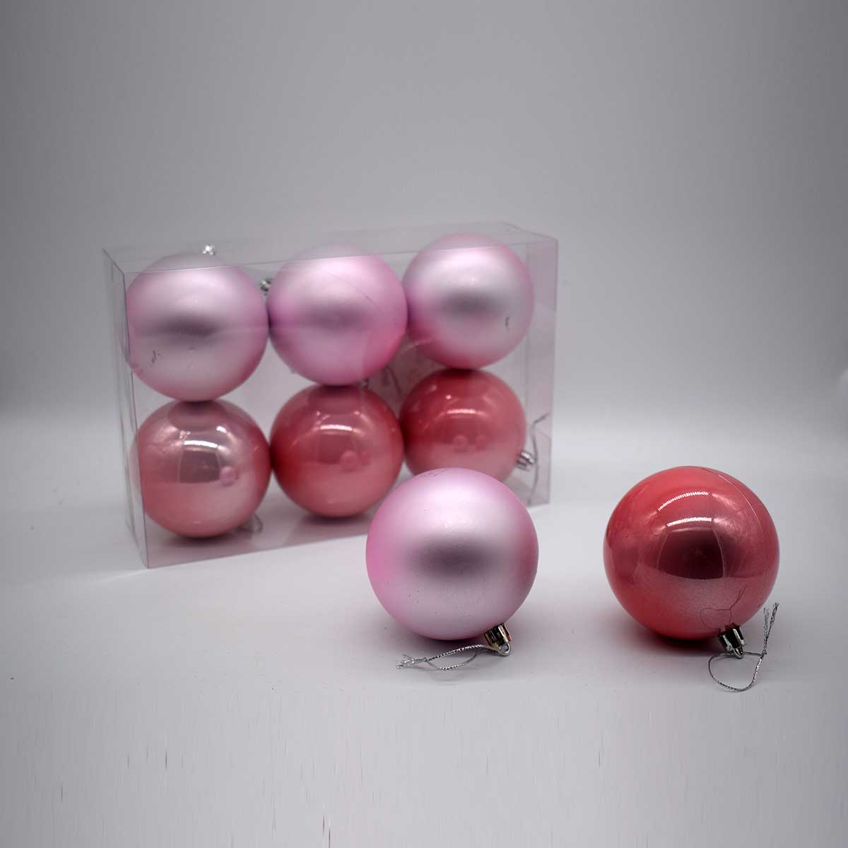 8cm πακετο s/6 χρ.μπαλες αθραυστες matt/pearly blush pink