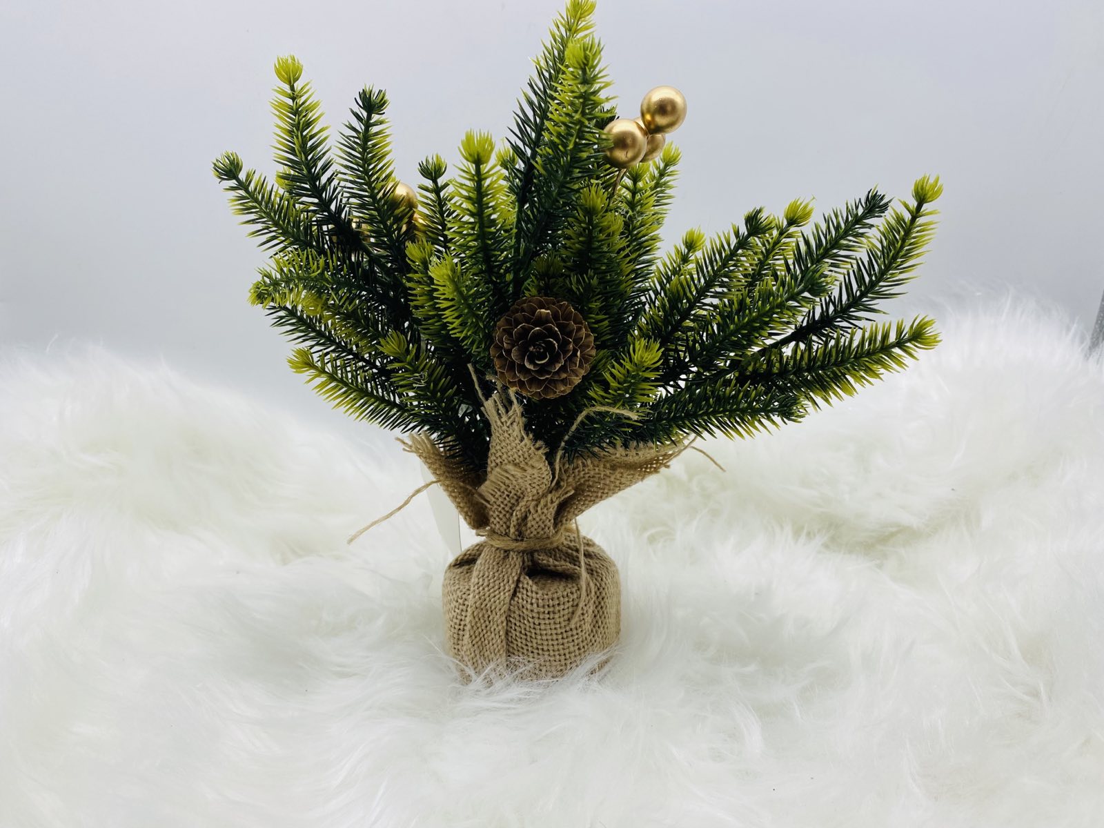 δεντρακι ελατο σε τσουβαλακι 25cm χρυσο γκι/κουκουναρακια