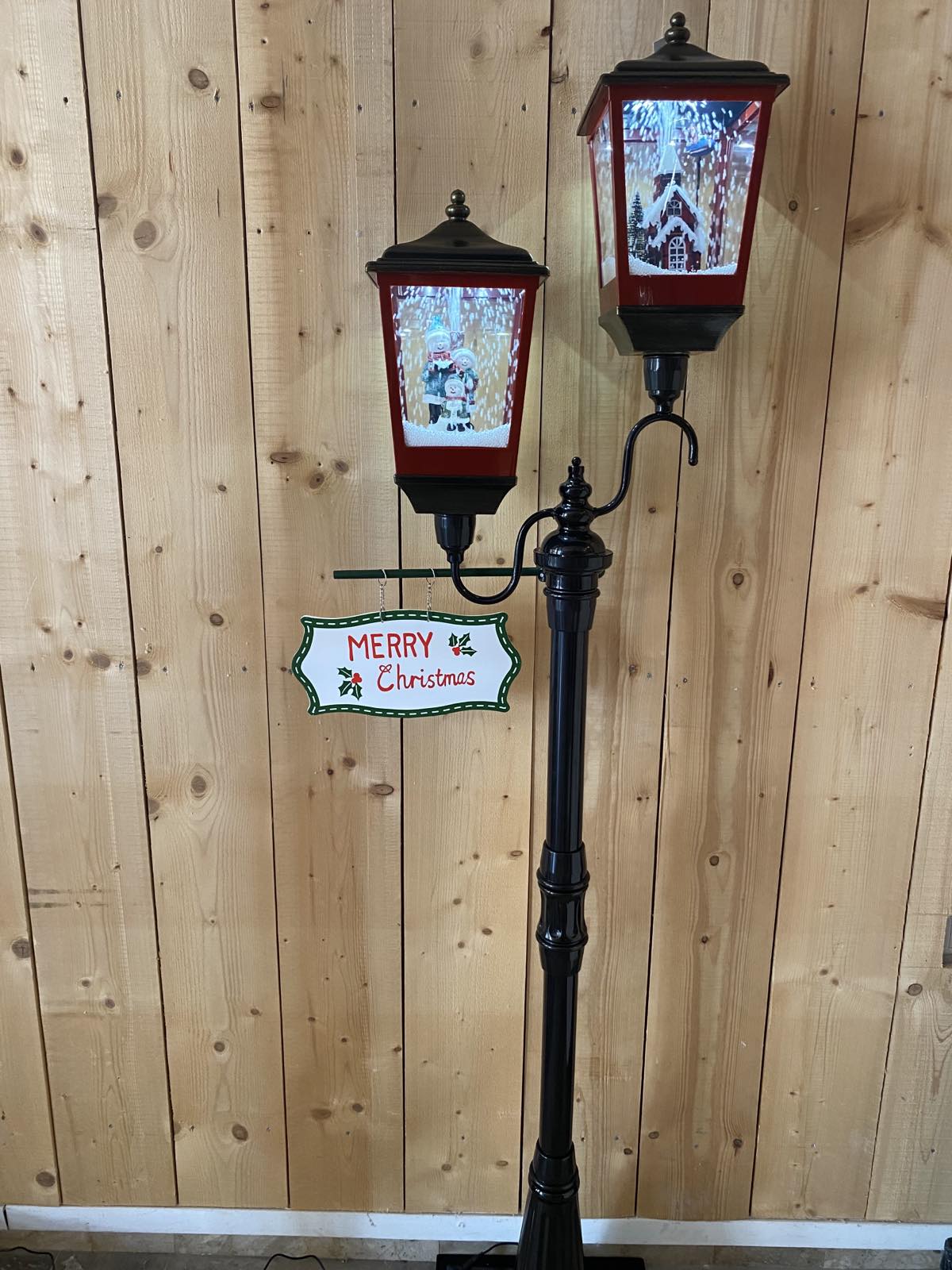 φαναρι διπλο ασυμμετρο με στυλο χιονι/φωτακια/μουσικη 200cm maroon gold