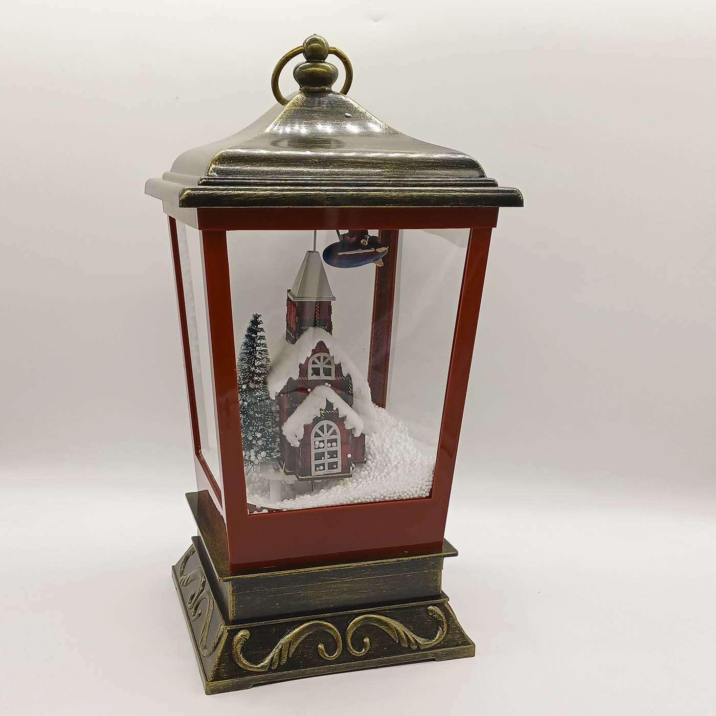 φαναρι κωνικο χιονι/φωτακια/μουσικη 20*20*40cm μαυρο/κοκκινο