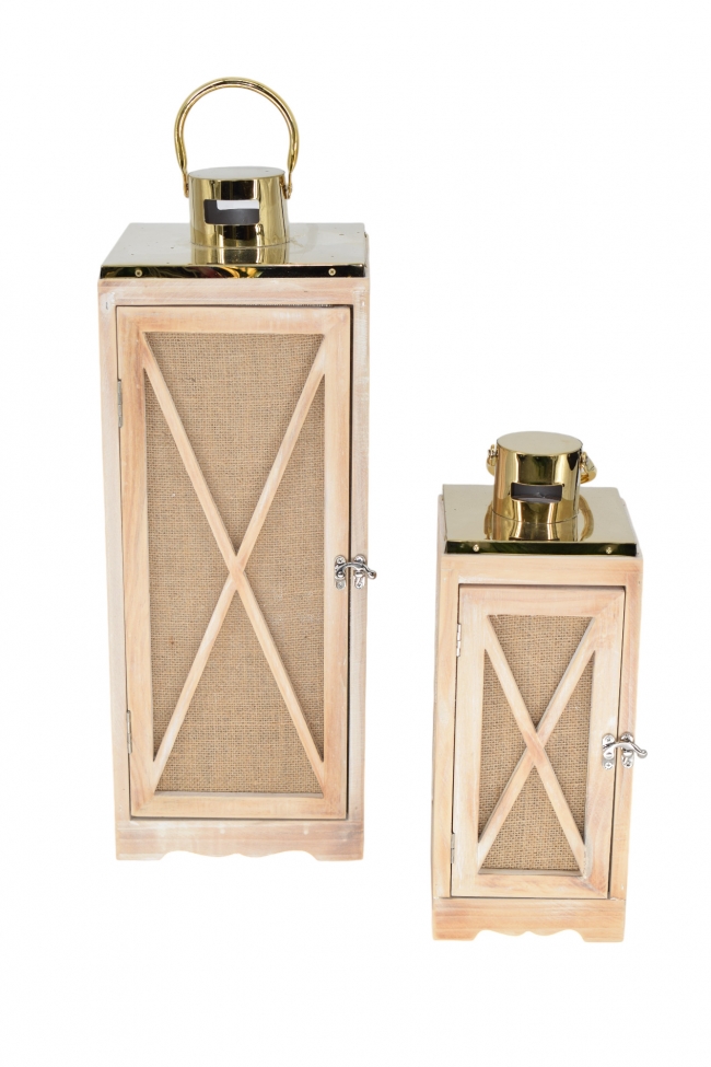 ΦΑΝΑΡΙ S/2 ΞΥΛΟ/ΜΕΤΑΛΛΟ 20*53 14*36CM NATURAL/GOLD/JUTE