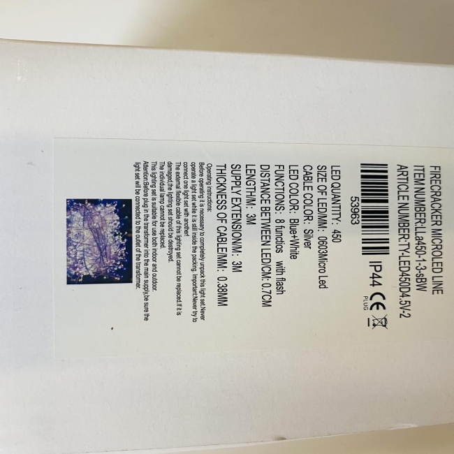 firecracker lights 3m 450led silver 8 functions blue/white ip44