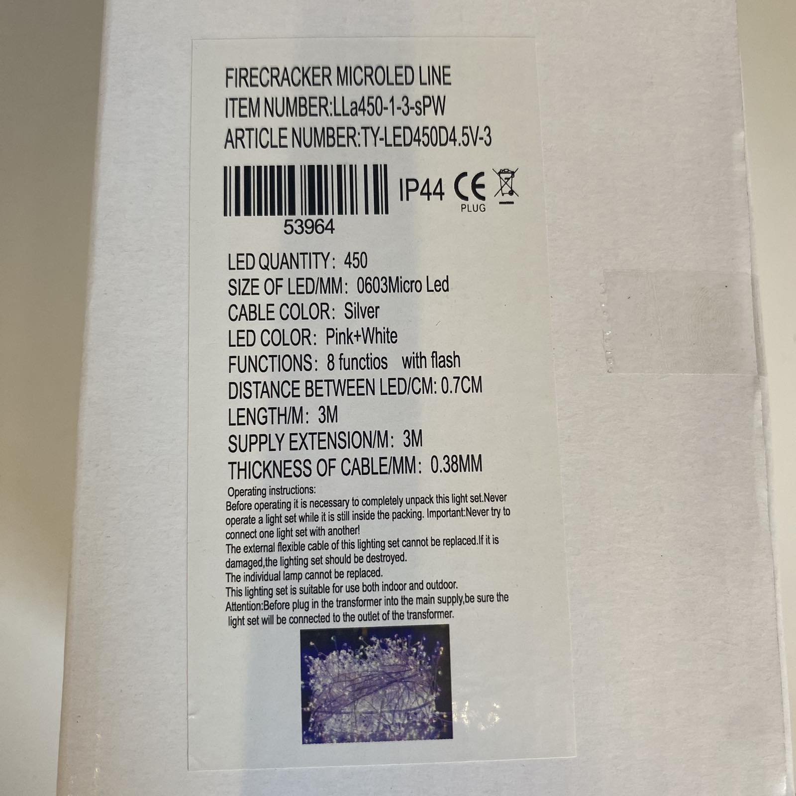 firecracker lights 3m 450led silver 8 functions pink/white ip44