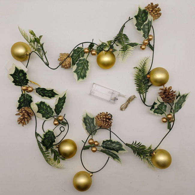 γιρλαντα φωτακια 2m μπαλες/γκι/κουκουναρια χρυσο