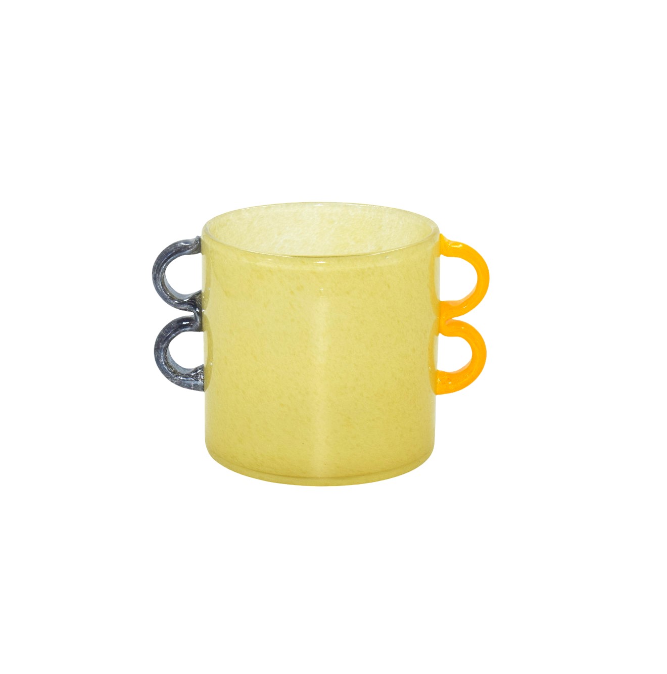 GLASS VASE MULTICOLOR HANDLES 22*15*14.5CM CREAM YELLOW