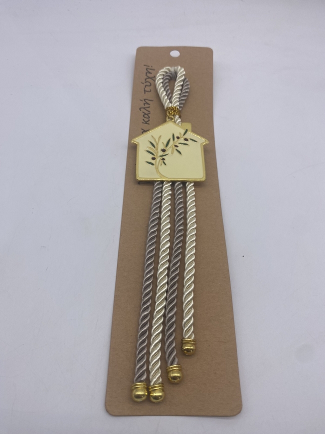 γουρι 2 κορδονια 21cm χρυσο/μοκκα σπιτακι/ελια