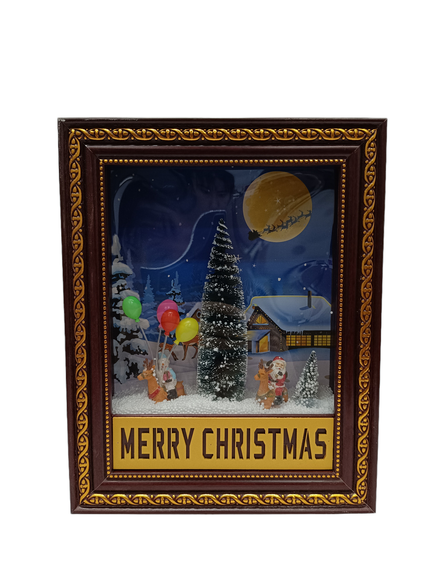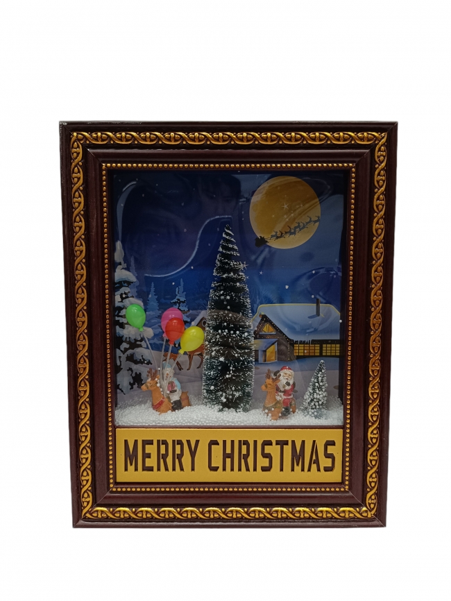 καδρο χριστουγεννιατικο χιονι/φωτακια/μουσικη 28.5*8.5*36cm claret gold