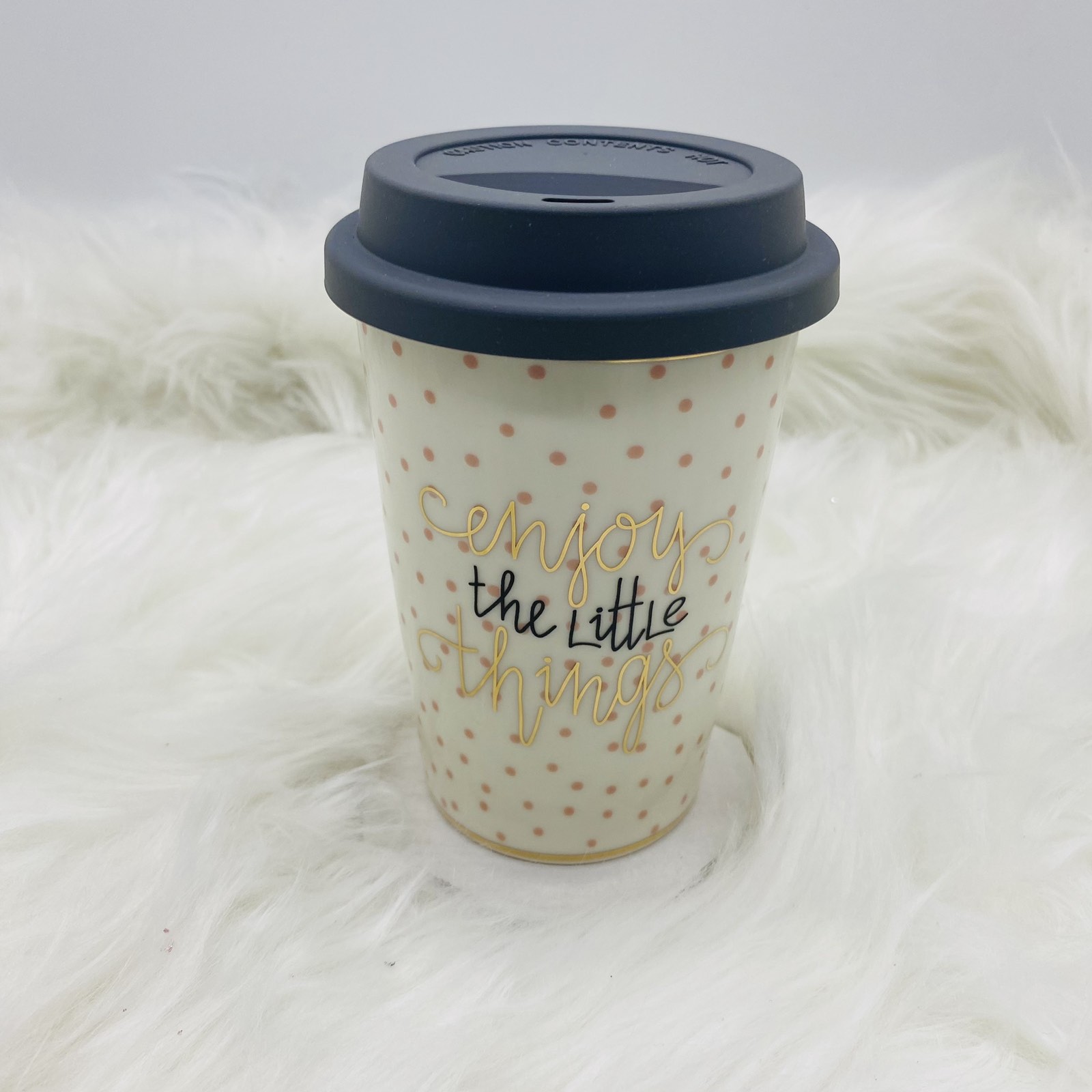 κεραμικη κουπα/καπακι little things 9*12.7*6.2cm 400ml pink/black