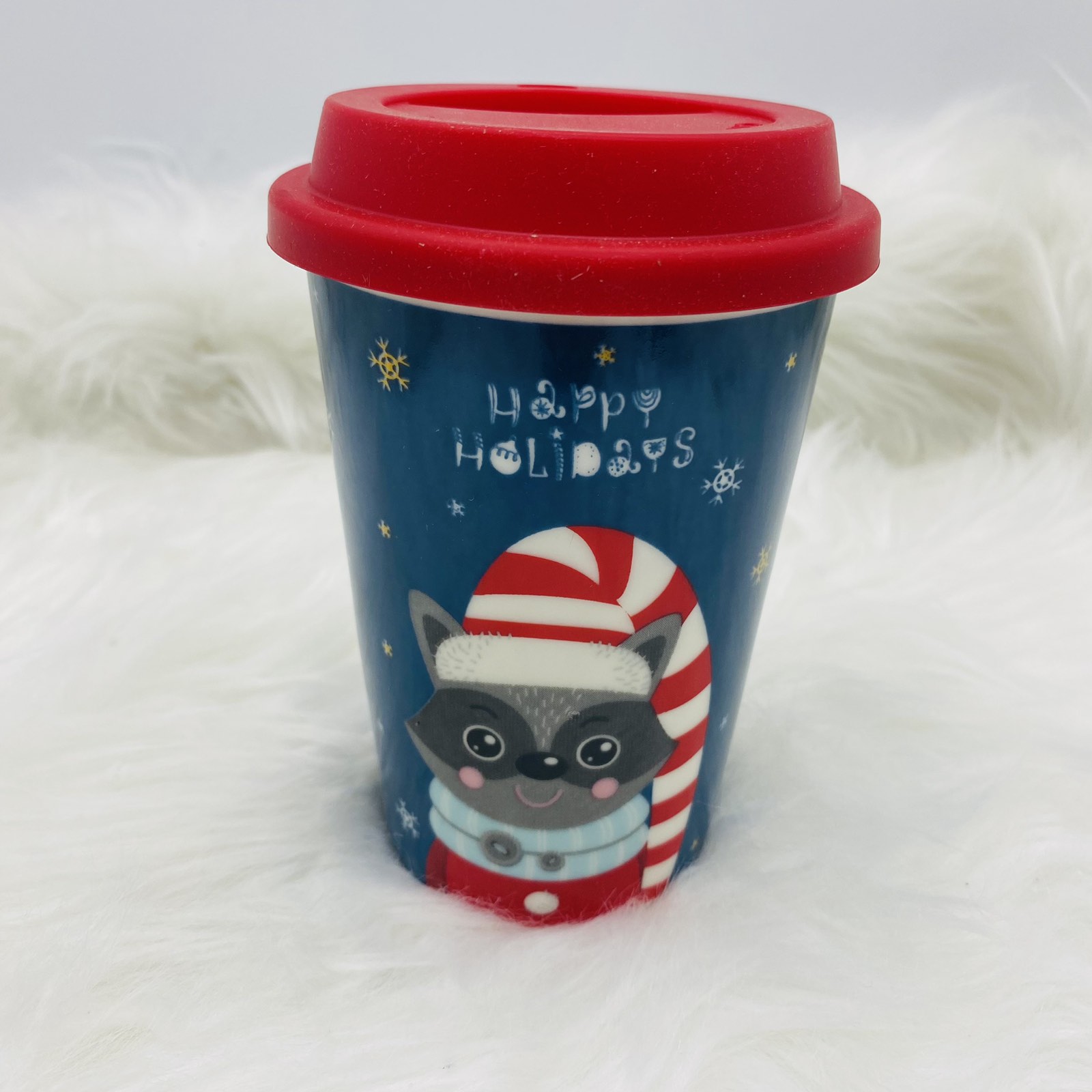 κεραμικη κουπα/καπακι racoon 9*12.7*6.2cm 400ml blue/red
