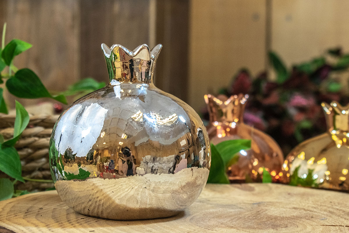 κεραμικο ροδι ασημενιο 10 x 10 x 11cm