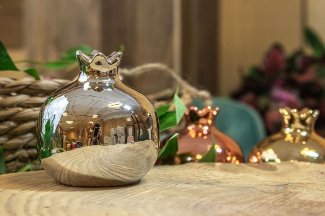 κεραμικο ροδι ασημενιο 7 x 7 x 8cm