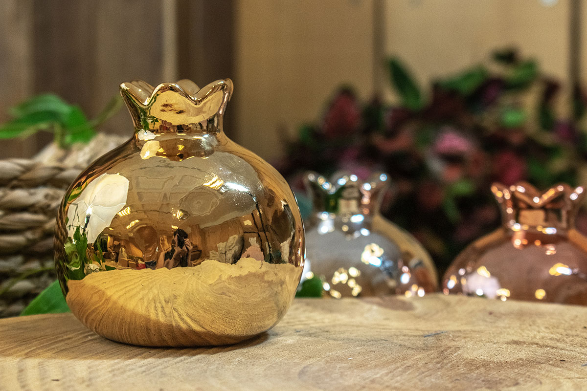 κεραμικο ροδι χρυσο 8 x 8 x 9cm