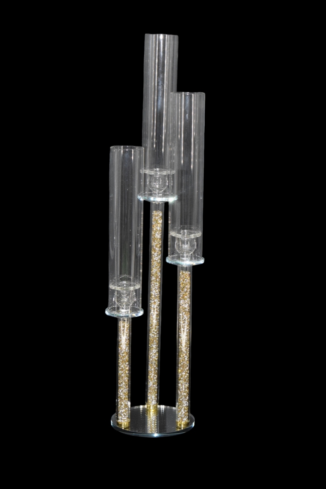 ΚΗΡΟΠΗΓΙΟ ΓΥΑΛΙΝΟ/ΧΡΥΣΟ 16*16*73cm 3 ΘΕΣΕΩΝ ΕΠΙΤΡΑΠΕΖΙΟ
