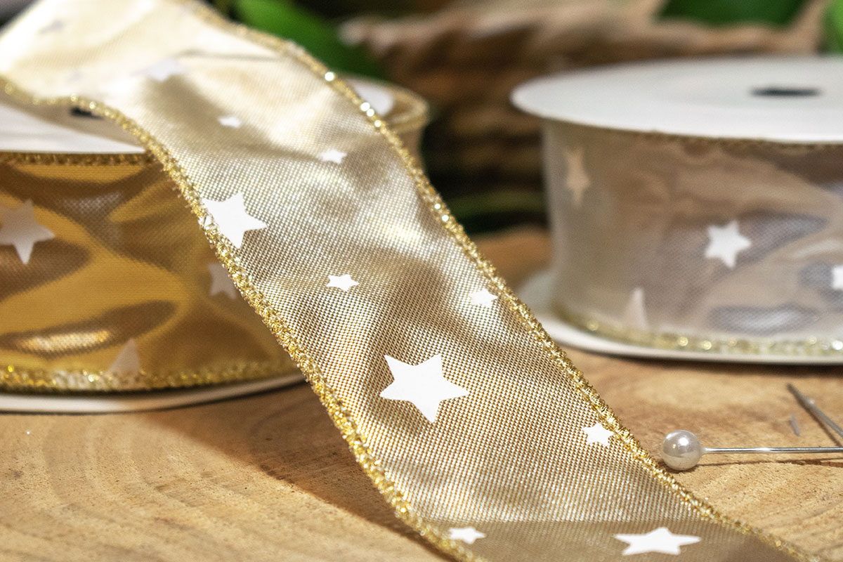 κορδελα 40mmx10y αστερακια χρυσο ματ
