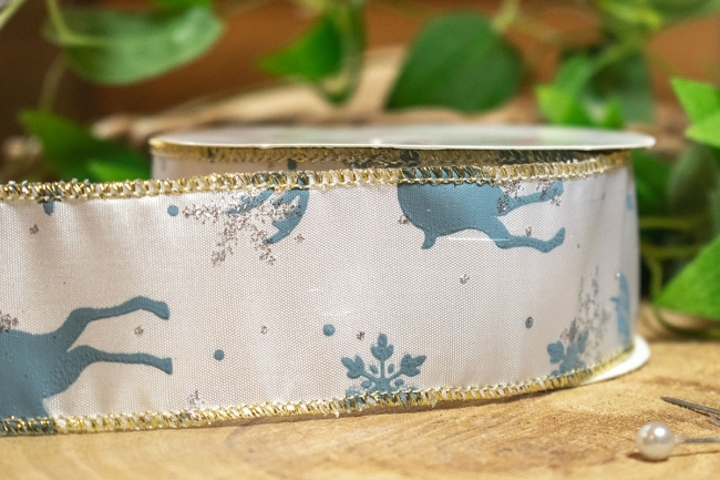 κορδελα 40mmx10y ελαφακια με νιφαδες λευκη/γαλαζια