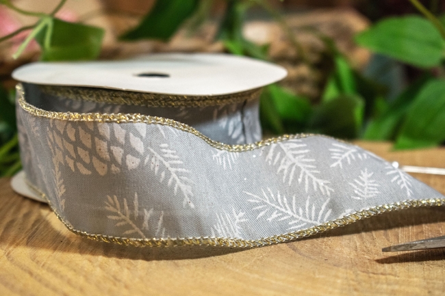 κορδελα 40mmx10y κουκουναρια γκρι-λευκο