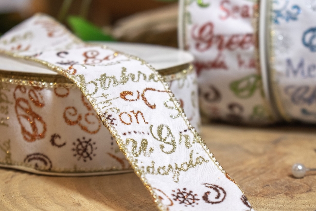 κορδελα 40mmx10y χρ.ευχες glitter bronze