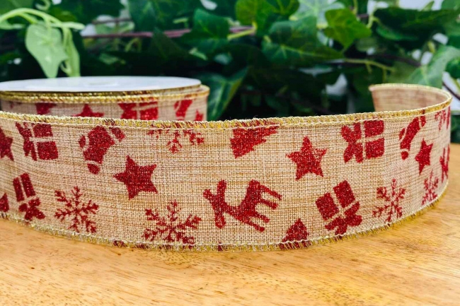 κορδελα 40mmx10y χρ.σχεδια glitter κοκκινα