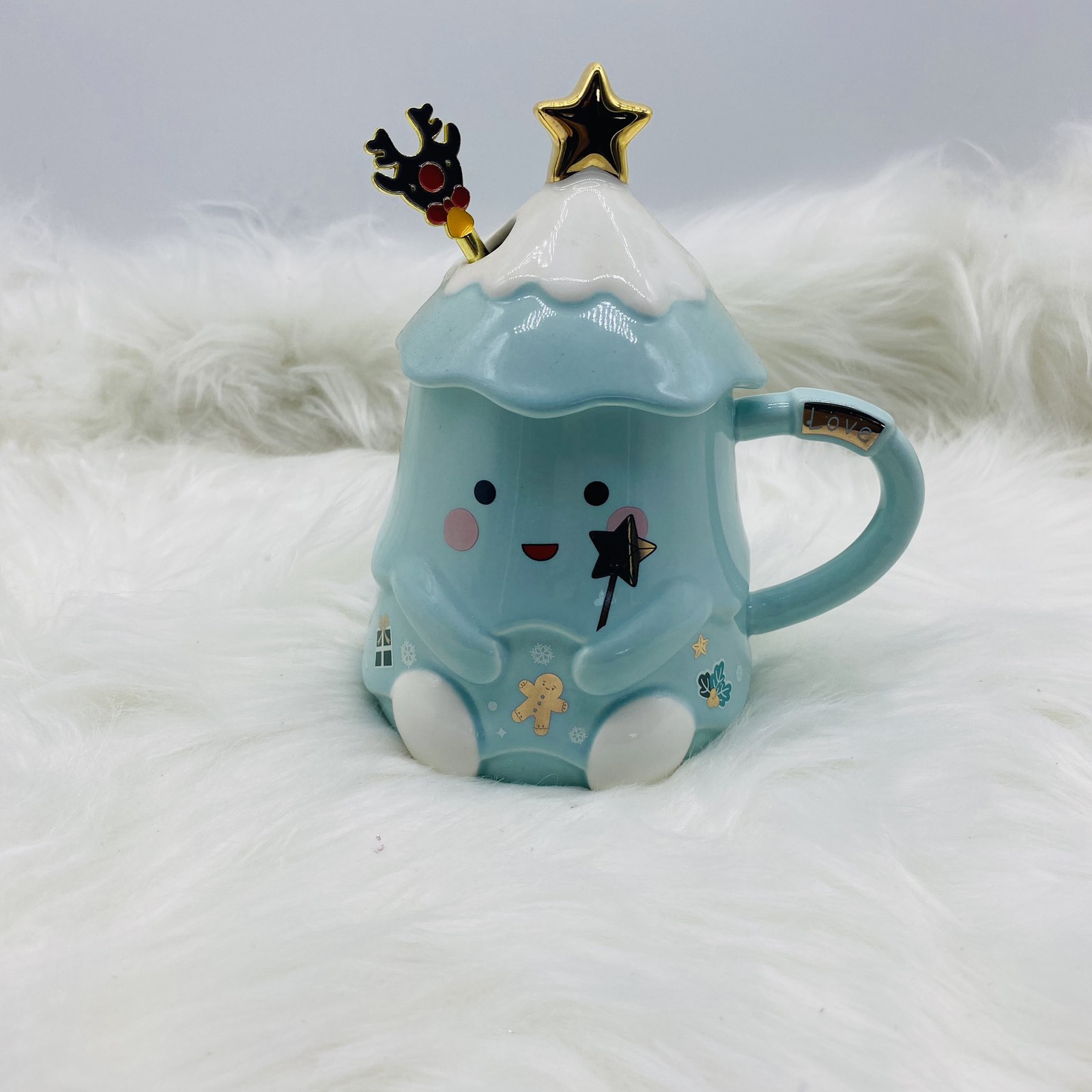 κουπα με καπακι αστερακι/κουταλακι ταρανδος 400ml light blue