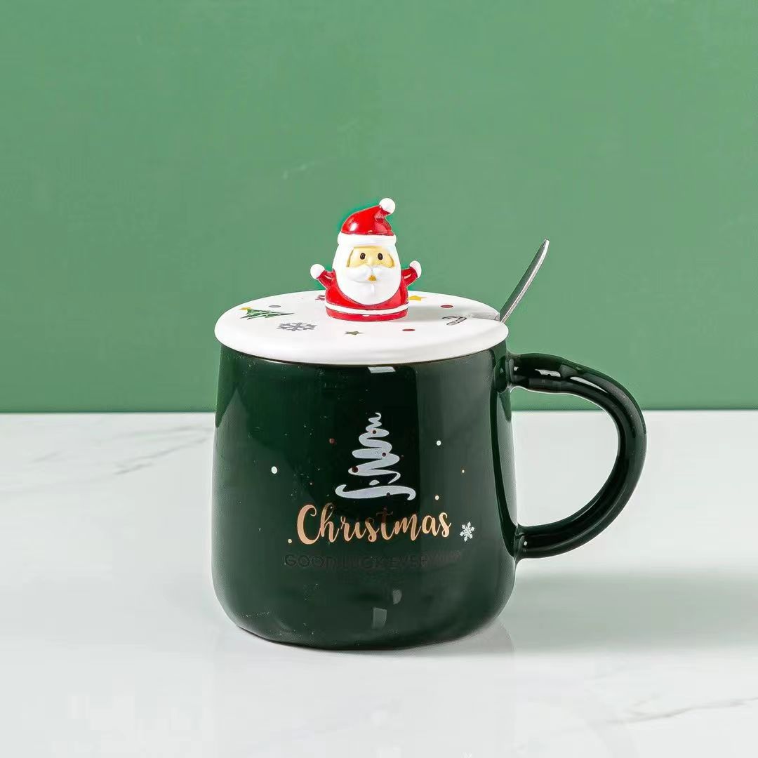 κουπα με καπακι santa/κουταλακι 7.3*8.7cm 400ml green