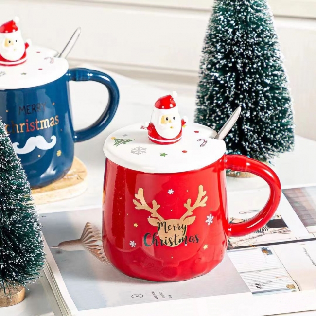 κουπα με καπακι santa/κουταλακι 7.3*8.7cm 400ml red