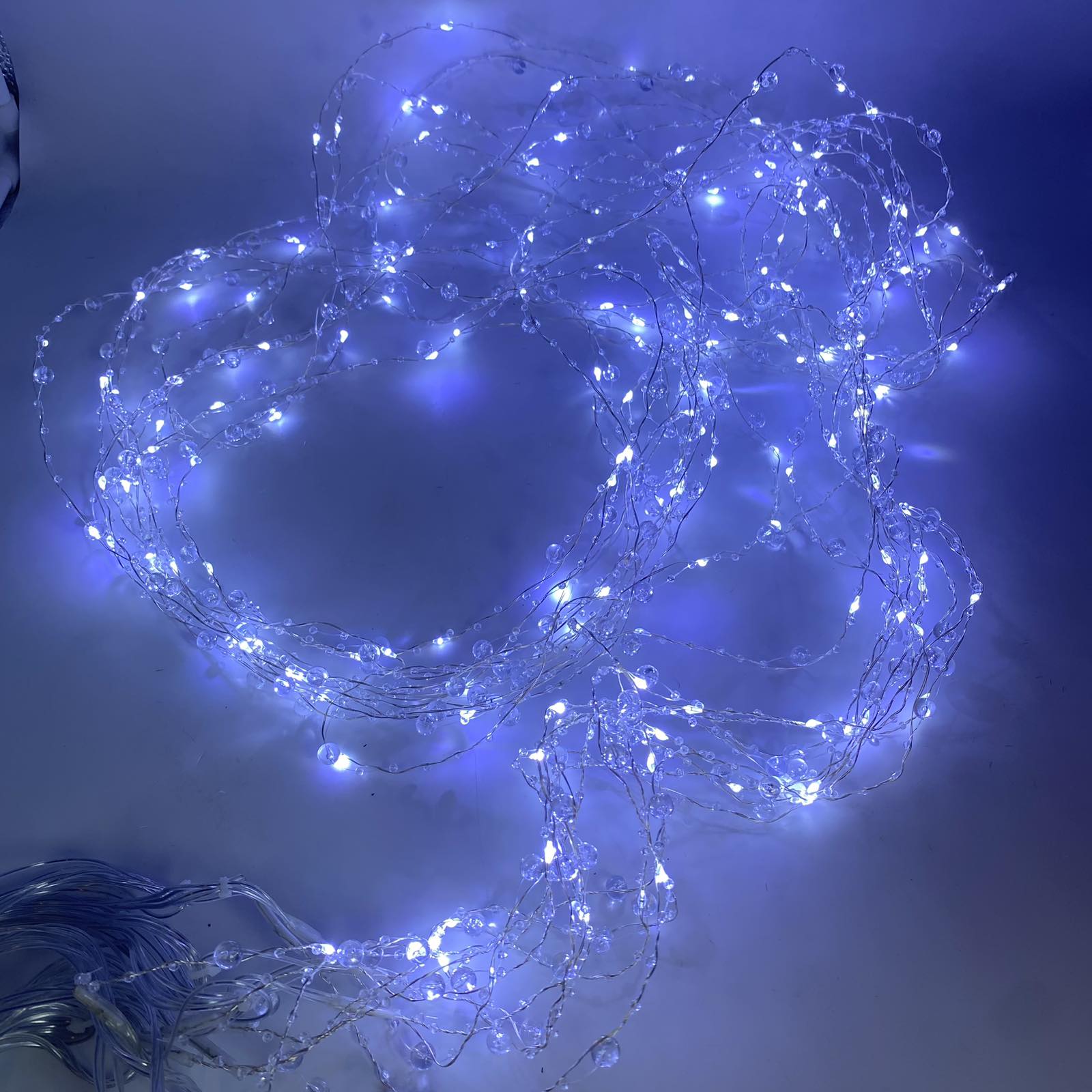microled crystal curtain x 10 strings 3*2m 200led silver 8 functions white ip44