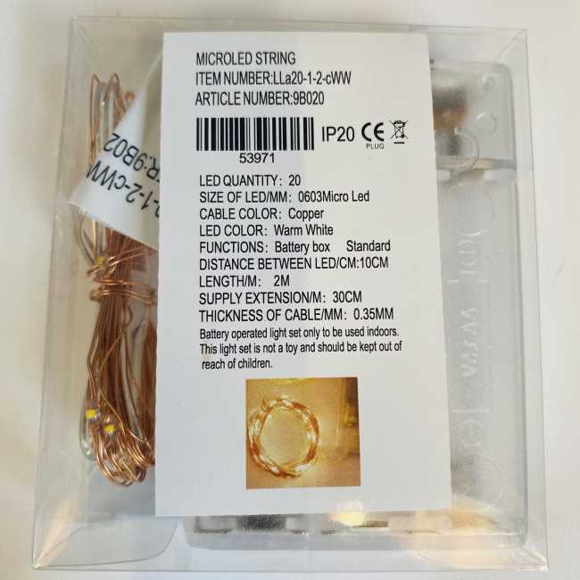 MICROLED STRING 2M 20LED COPPER STEADY WARM WHITE IP20 3AA