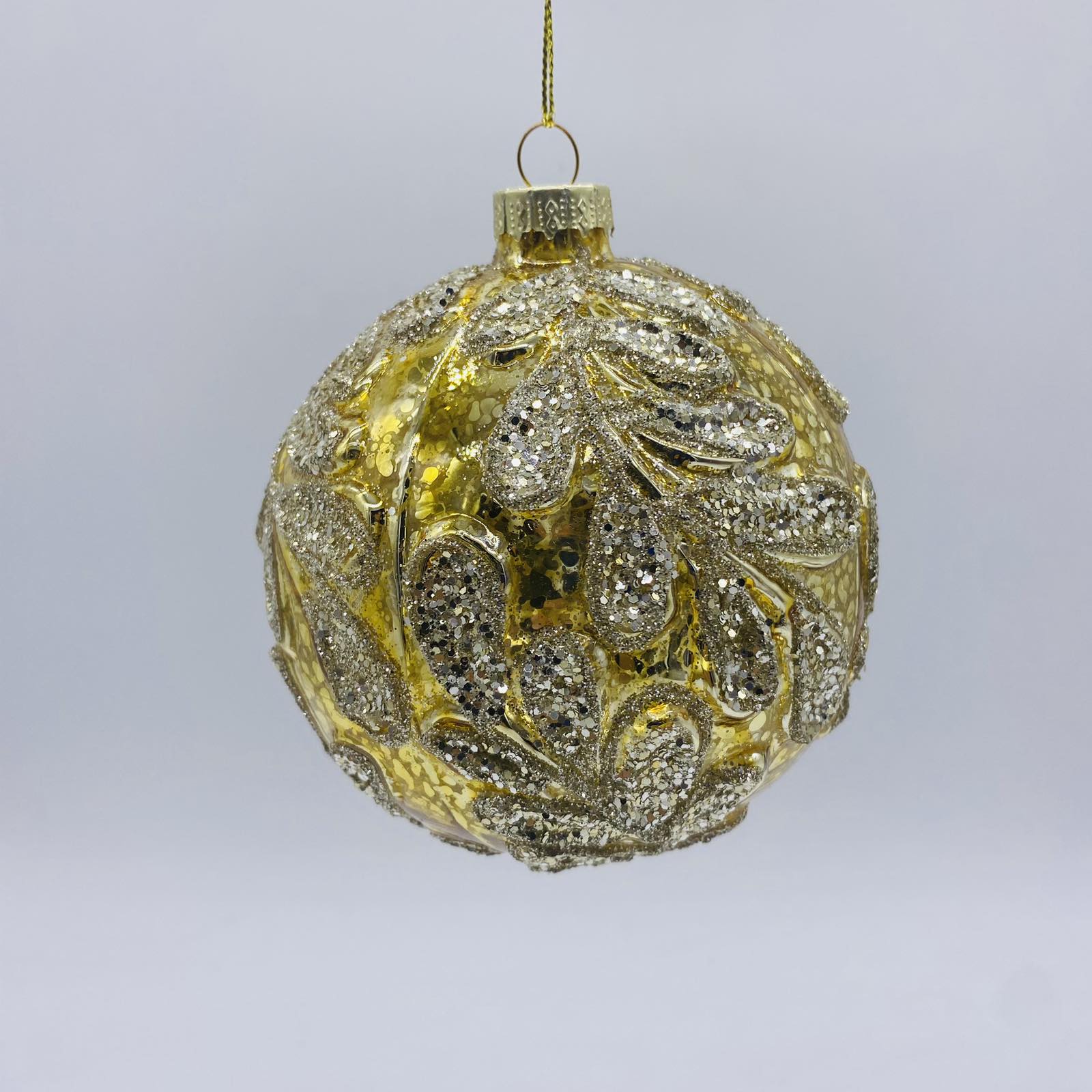 μπαλα γυαλινη φυλλα glitter 10cm antique bronze**
