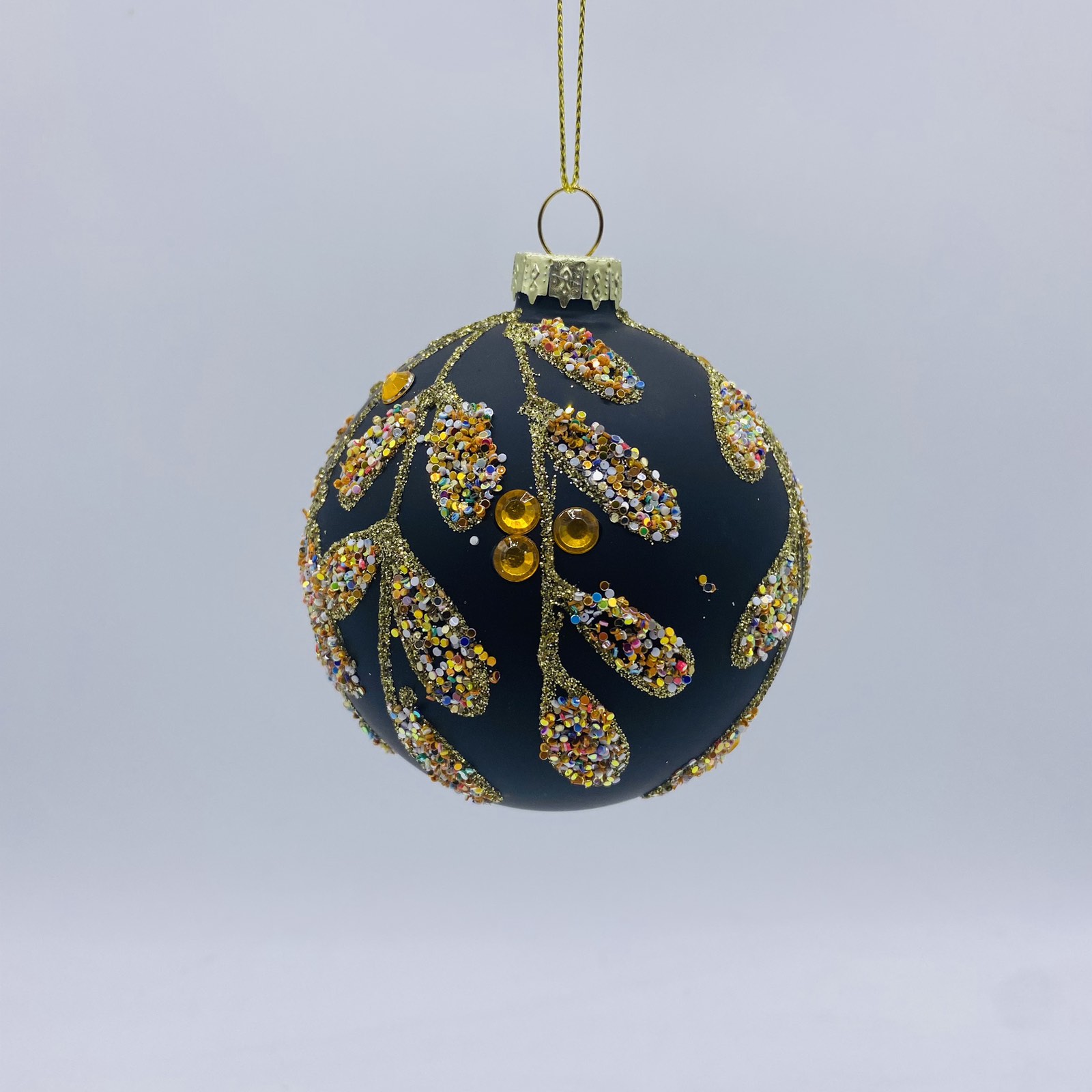 μπαλα γυαλινη pattern φυλλα 8cm gold/green