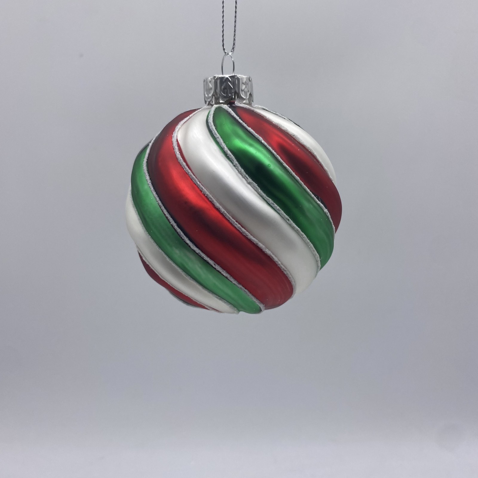 μπαλα γυαλινη 3 swirls 8cm red/green/white
