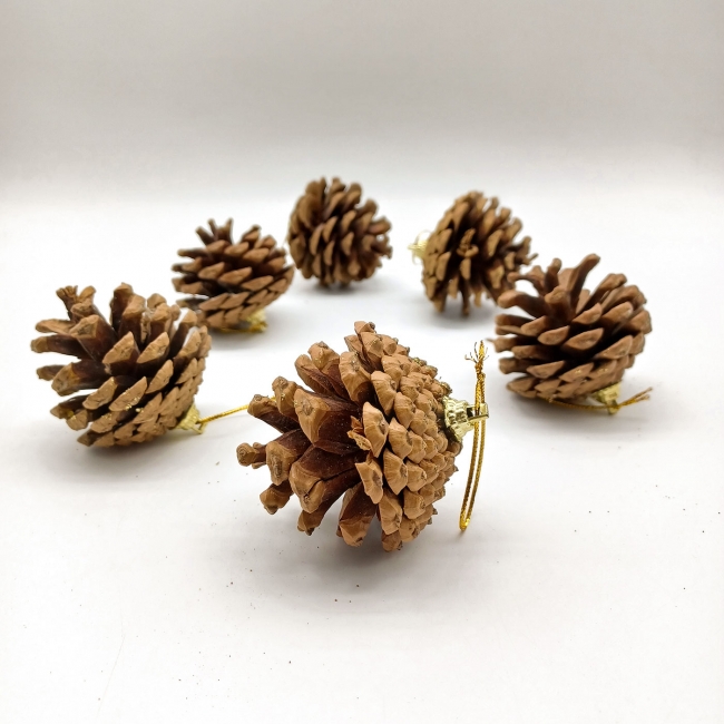 πακετο s/6 κουκουναρια με κορδονακι 6cm φυσικα