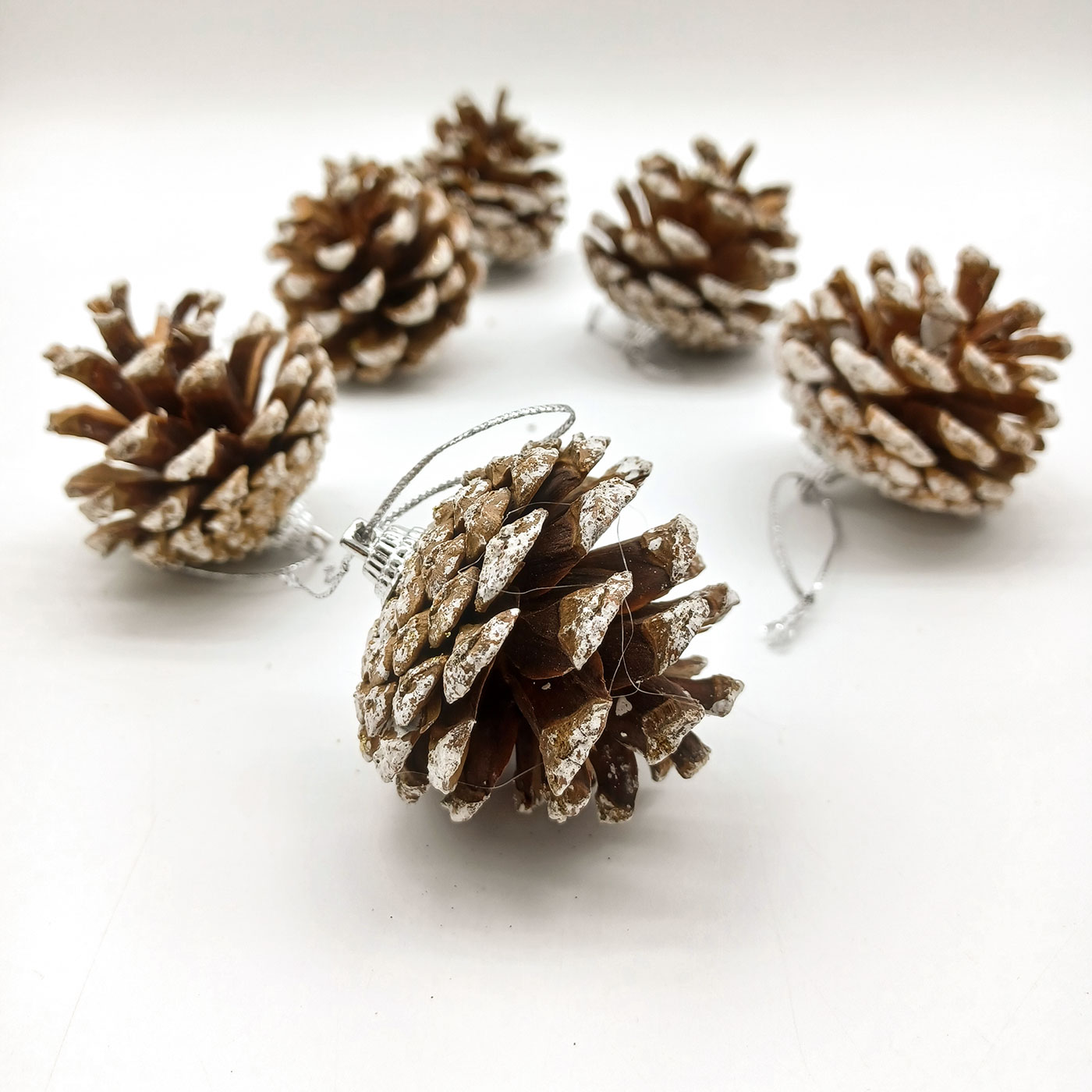 πακετο s/6 κουκουναρια με κορδονακι 6cm φυσικα/χιονισμενα