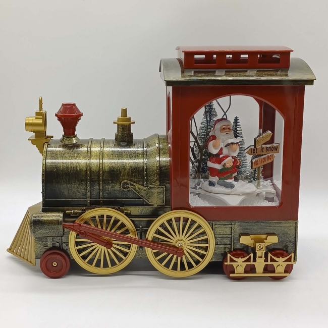 retro τρενακι χριστουγεννιατικο χιονι/φωτακια/μουσικη 31*24*15cm maroon gold**