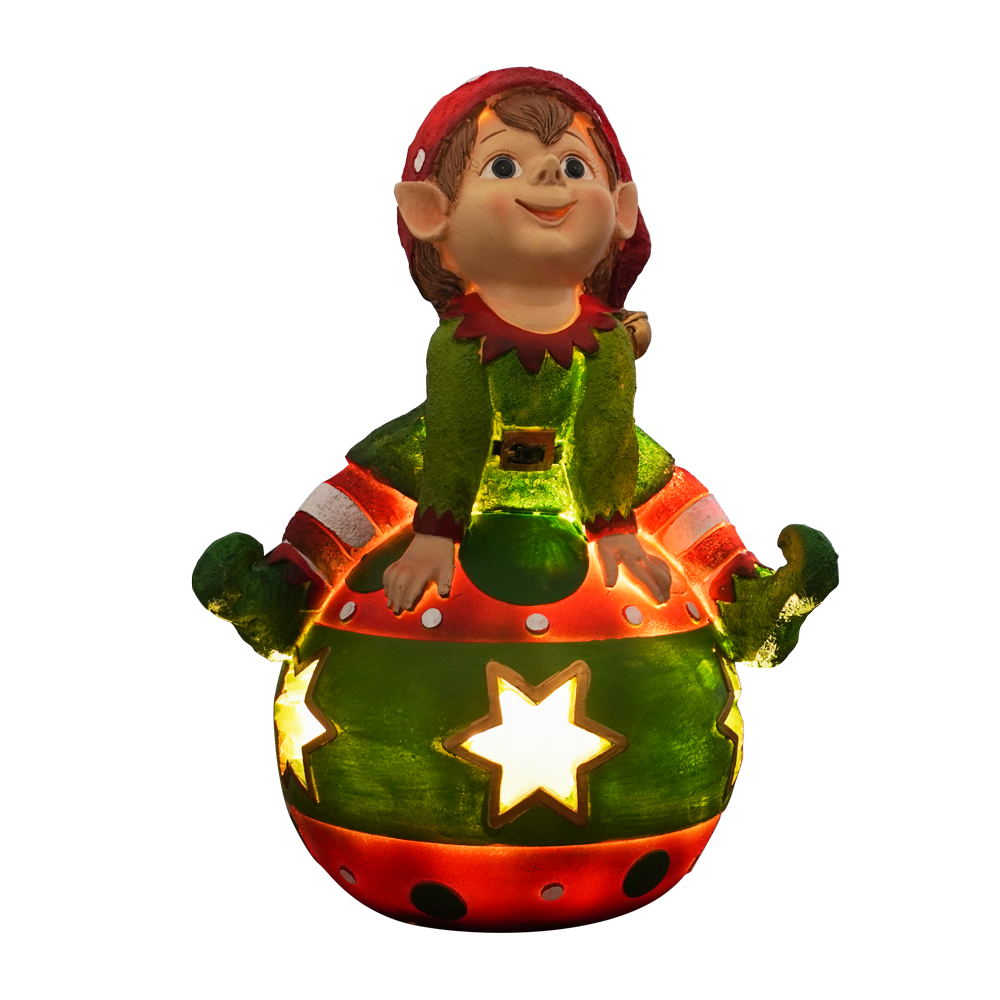 sitting elf on christmas ball 18.5*14*25cm led light 2*aaa green