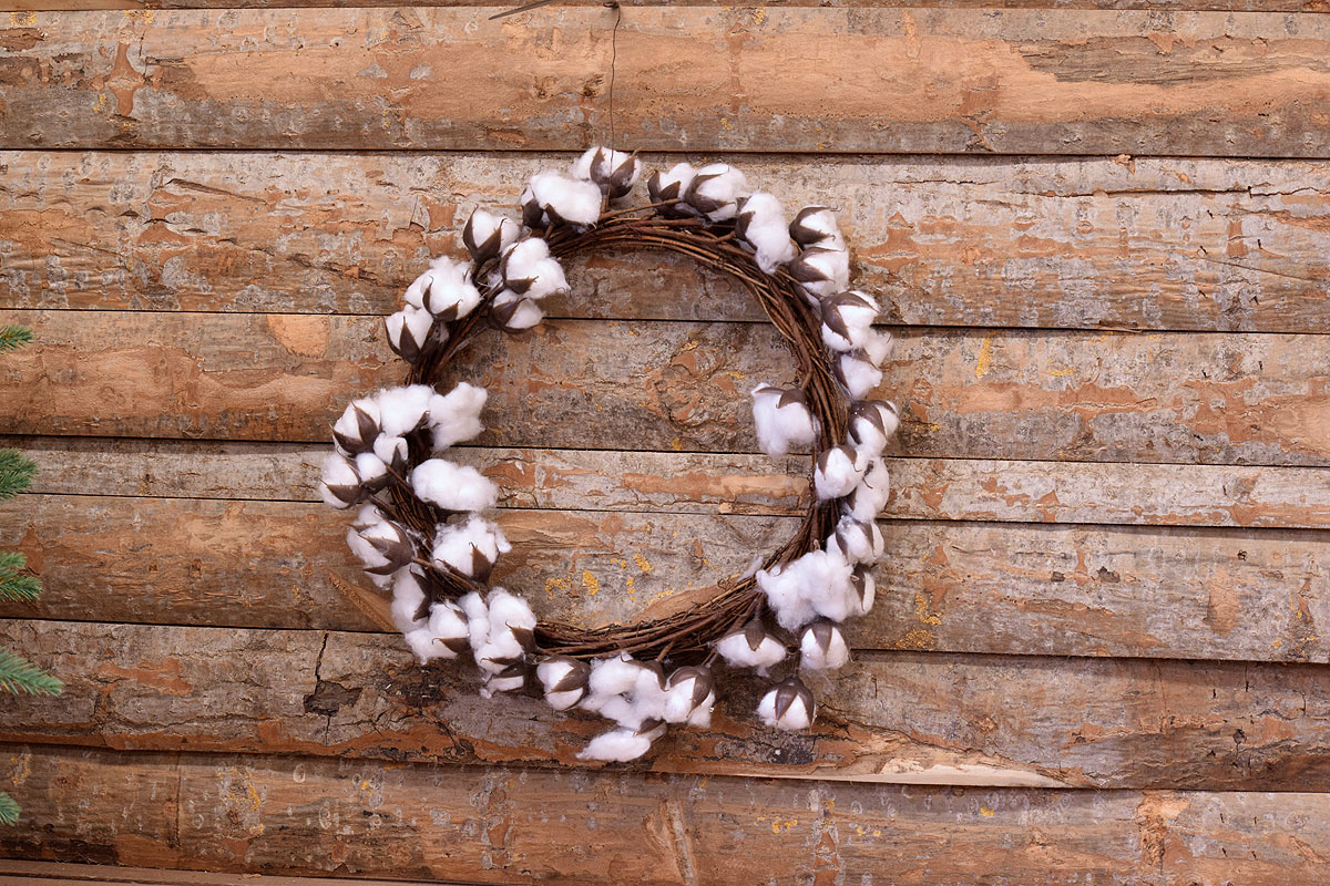 ΣΤΕΦΑΝΙ ΞΥΛΙΝΟ ΜΕ 32 ΑΝΘΗ ΒΑΜΒΑΚΙΟΥ 33CM