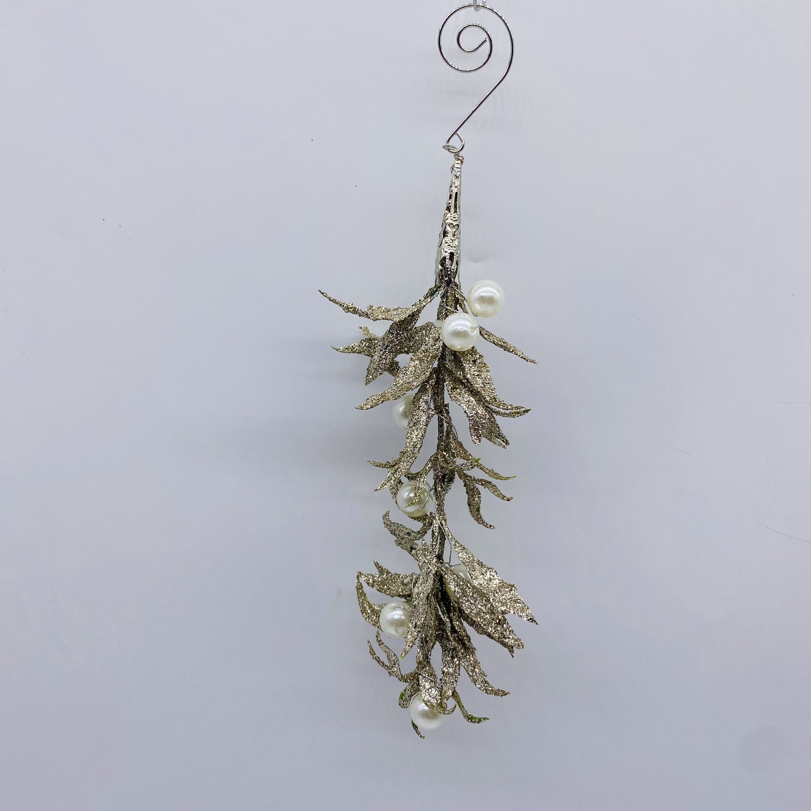 στολιδι κλαδακι white pearls 15cm champagne glitter