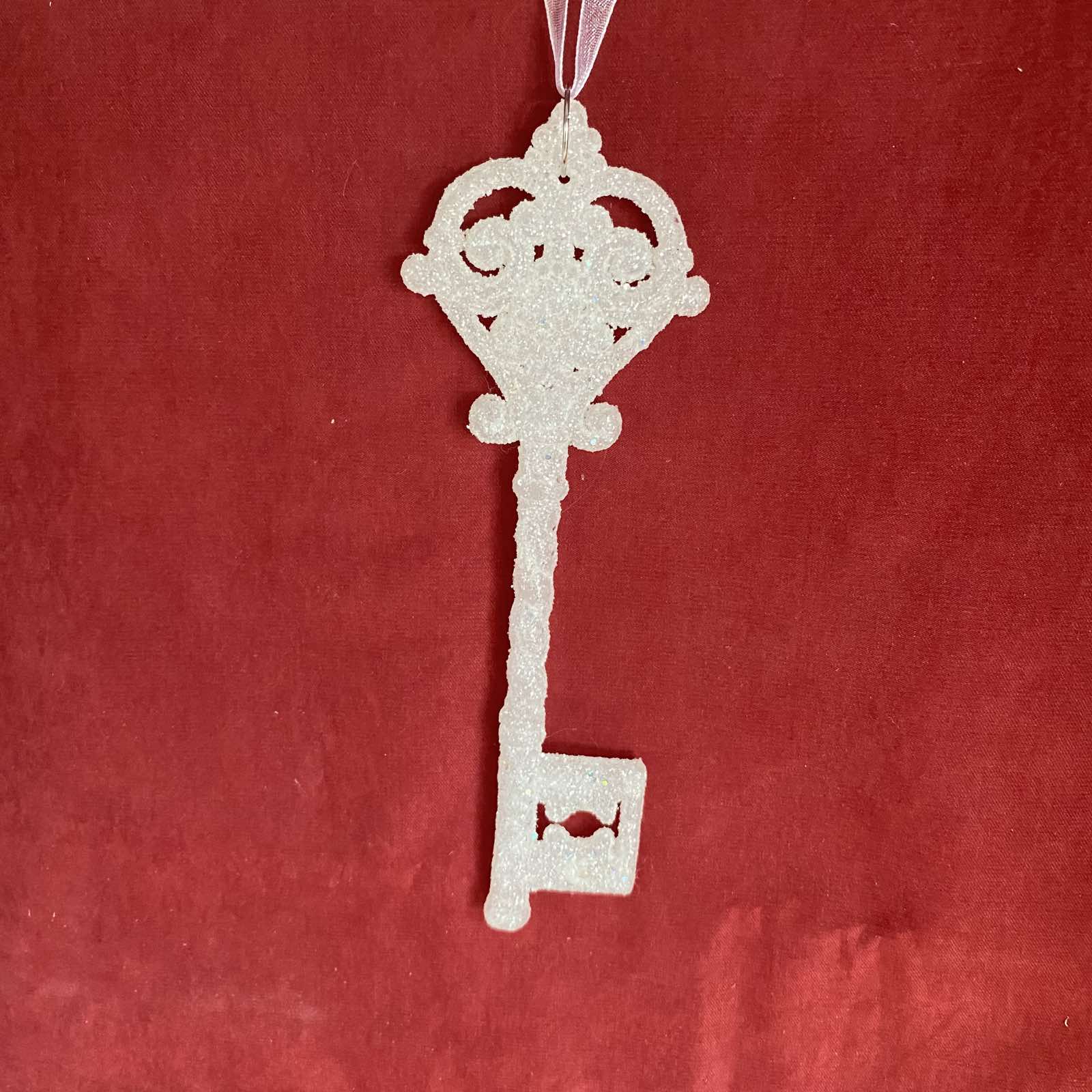 στολιδι κλειδι glitter 5*15cm λευκo