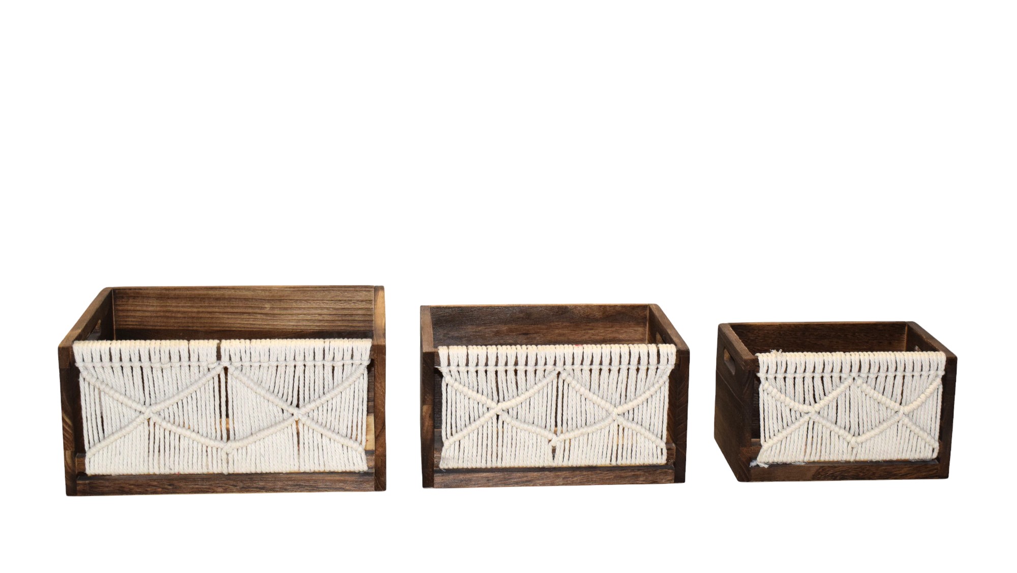 ΞΥΛΙΝΑ ΚΑΦΑΣΙΑ MACRAME S/3, 40*30*25CM NATURAL WOOD MEDIUM