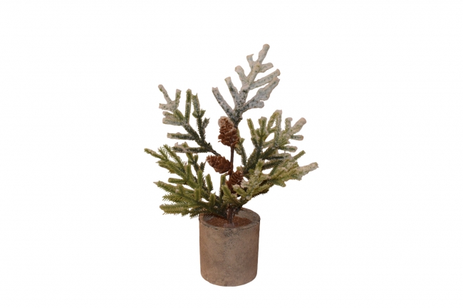 χρ.δεντρακι 29cm σε κασπω με κουκουναρια green χιονισμενο