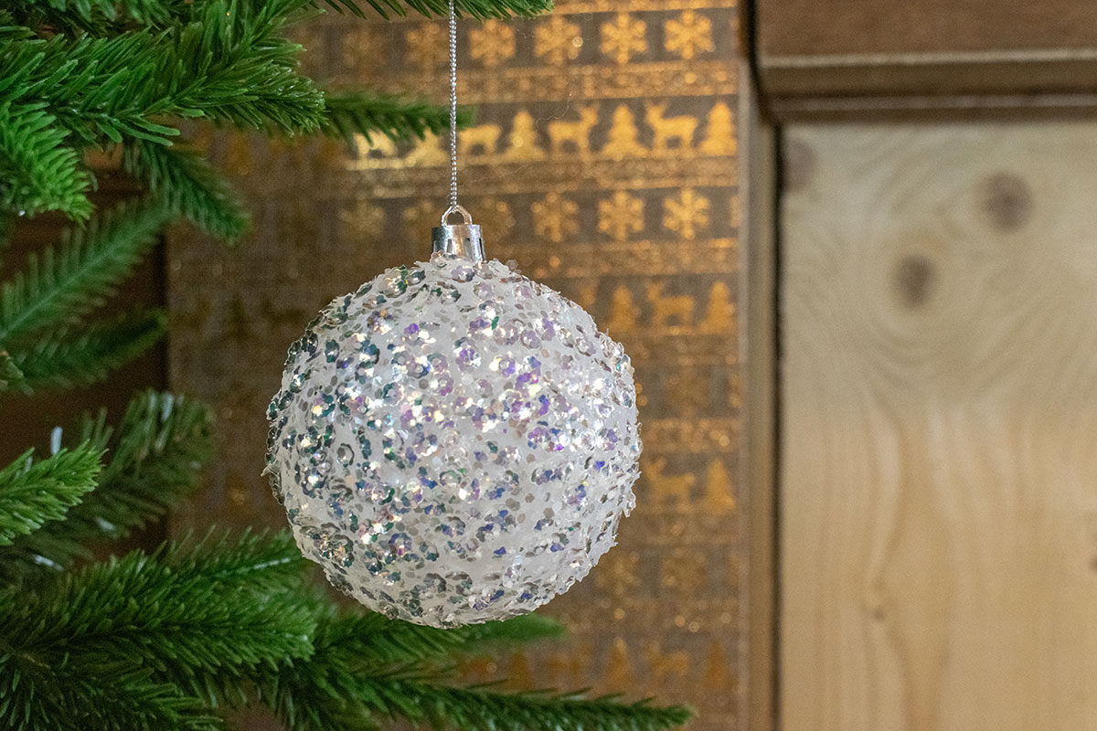 χρ.μπαλα αθραυστη λευκη με περλες 8cm