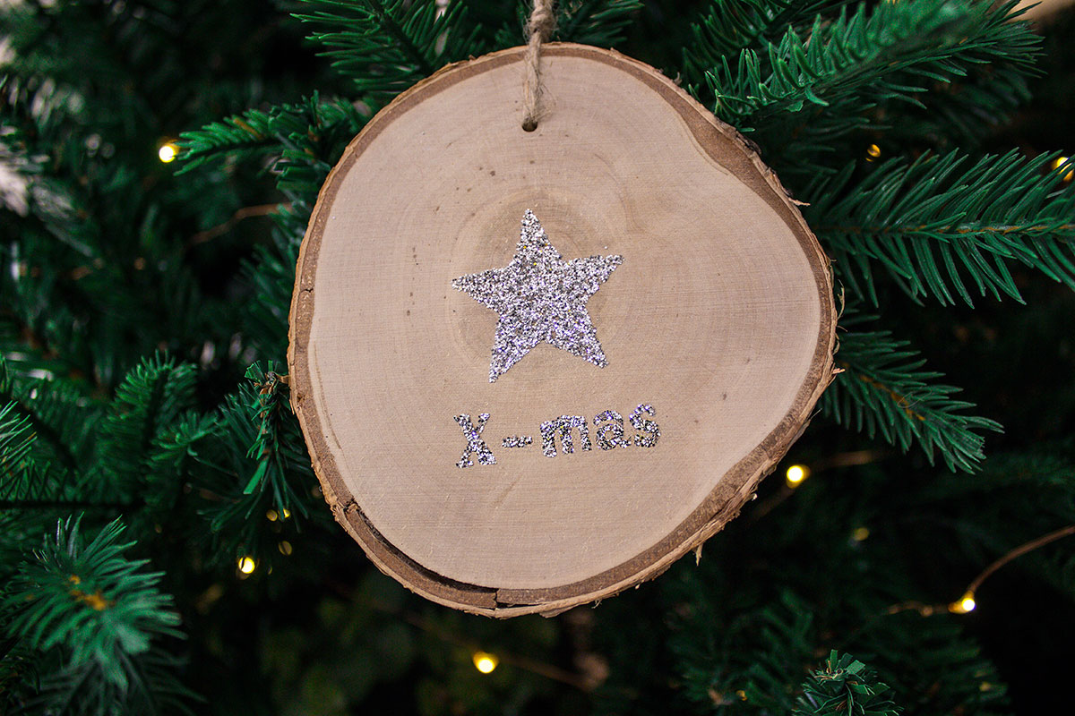 χρ.στολιδι φετα φυσικο ξυλο αστερι ασημενιο glitter 7-9cm