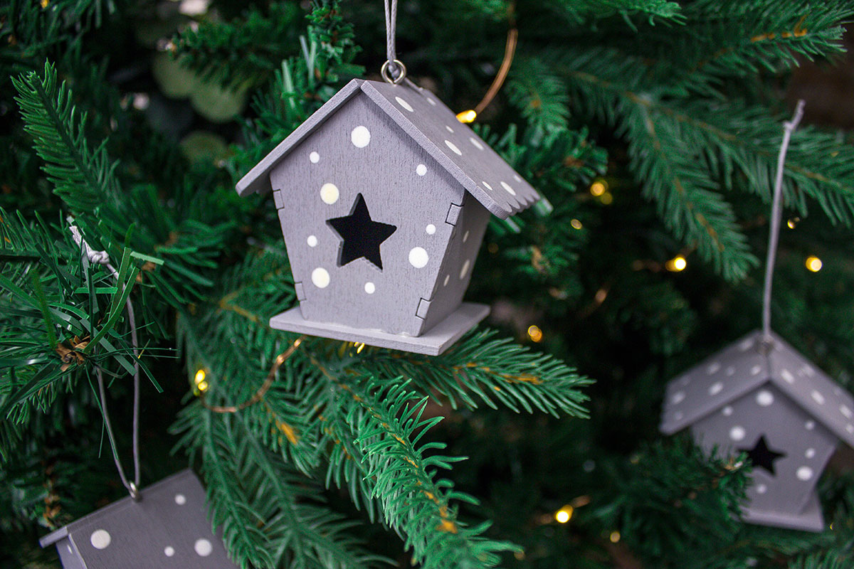 χρ.στολιδι σπιτακι γκριζο με αστερι λευκο πουα