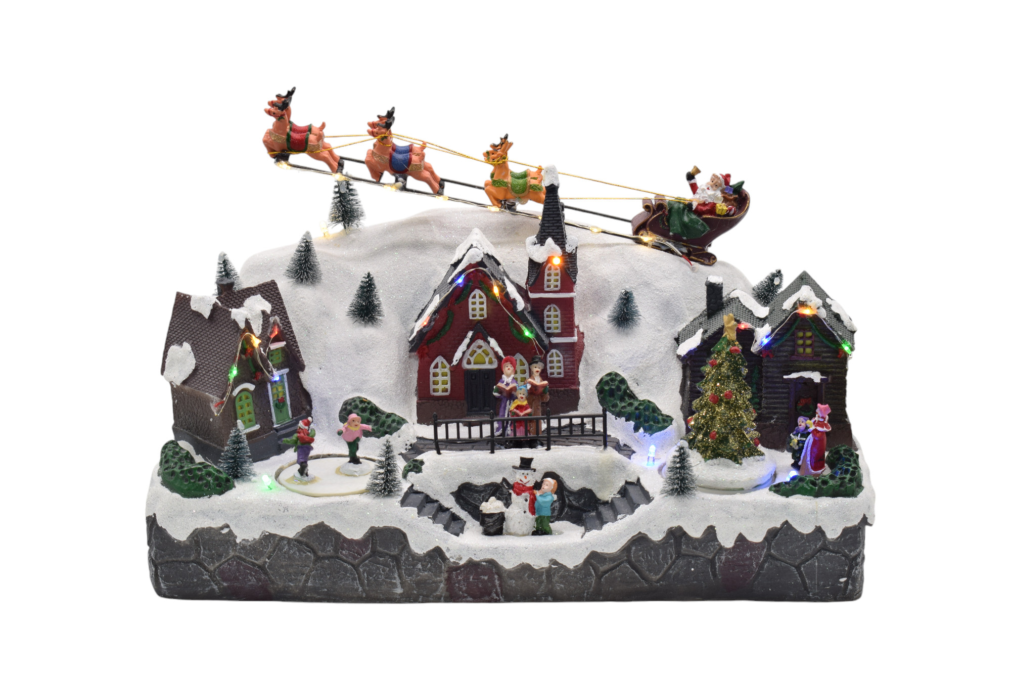 χρ.χωριο με ιπταμενο ελκηθρο 39,5*23*26,5cm κινηση/φωτακια/μουσικη 3aa