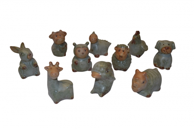 ΖΩΑΚΙΑ ΤΗΣ ΦΑΡΜΑΣ ΚΕΡΑΜΙΚΑ 5.5*5.5*7CM, S/10 ΠΑΛΑΙΩΜΕΝΟ ΠΡΑΣΙΝΟ
